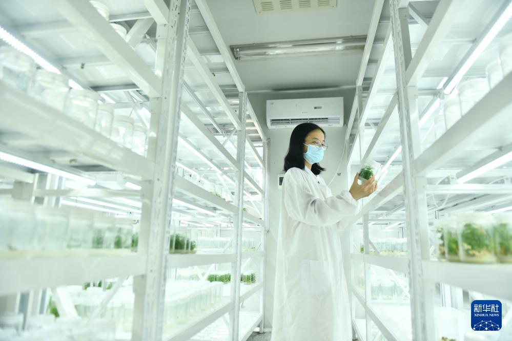 在廣西仙草堂制藥有限責任公司,技術人員在培育青蒿苗(8月27日攝)。