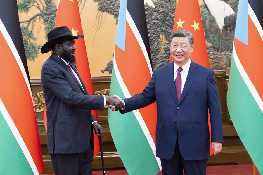 9月6日晚,國家主席習(xí)近平在北京人民大會堂會見來華出席中非合作論壇北京峰會的南蘇丹總統(tǒng)基爾。