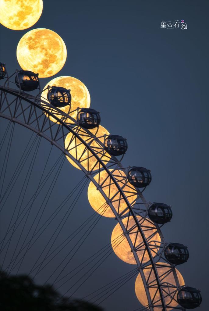 星空攝影師魏偉2023年9月29日(農(nóng)歷八月十五)在福建福州拍攝的中秋月(多張疊加),也是一輪“超級月亮”。(星聯(lián)CSVA供圖)