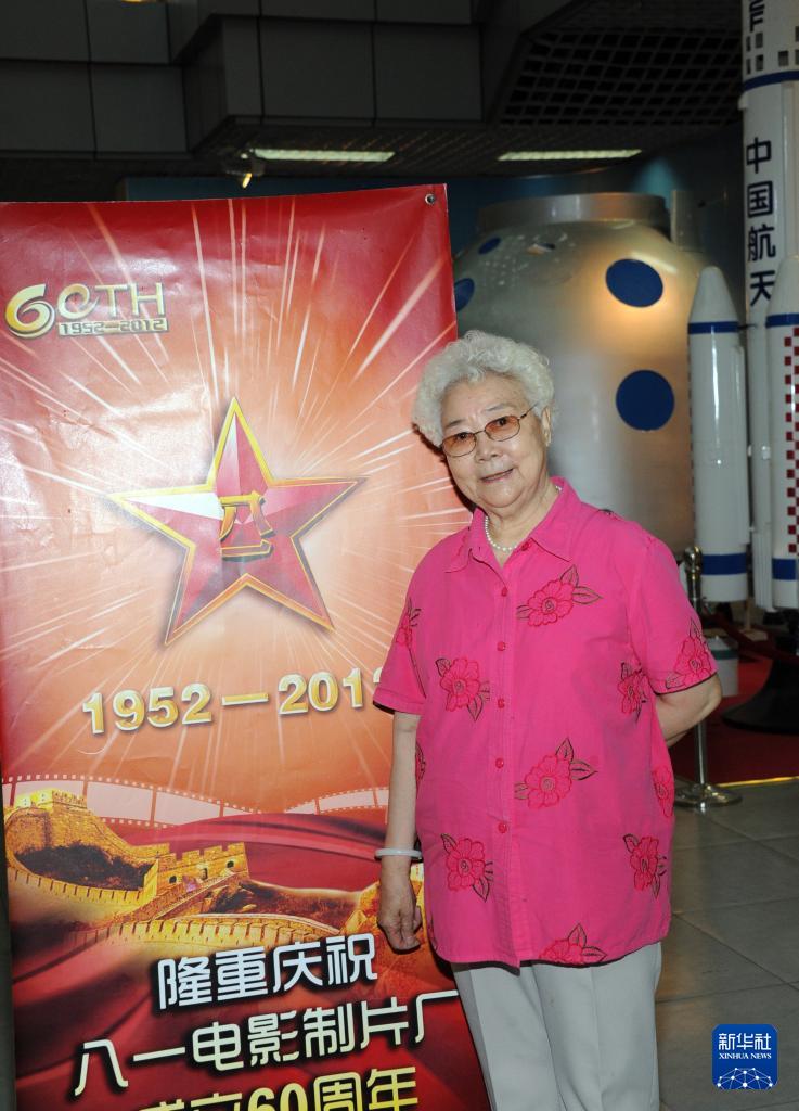 2012年8月1日,田華在八一電影制片廠“廠史館”前留影。新華社發(fā)