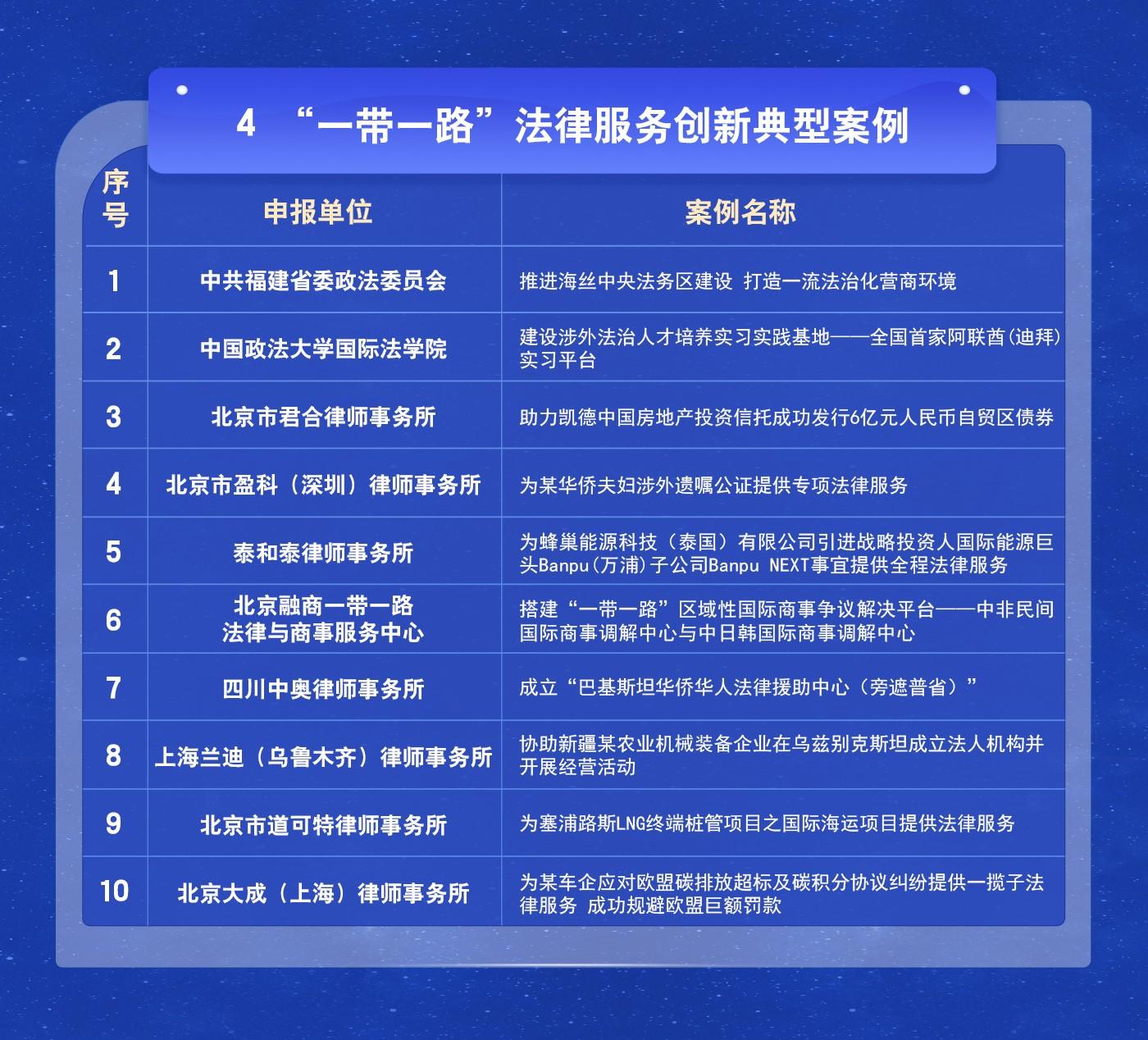 “一帶一路”法律服務(wù)創(chuàng)新典型案例名單