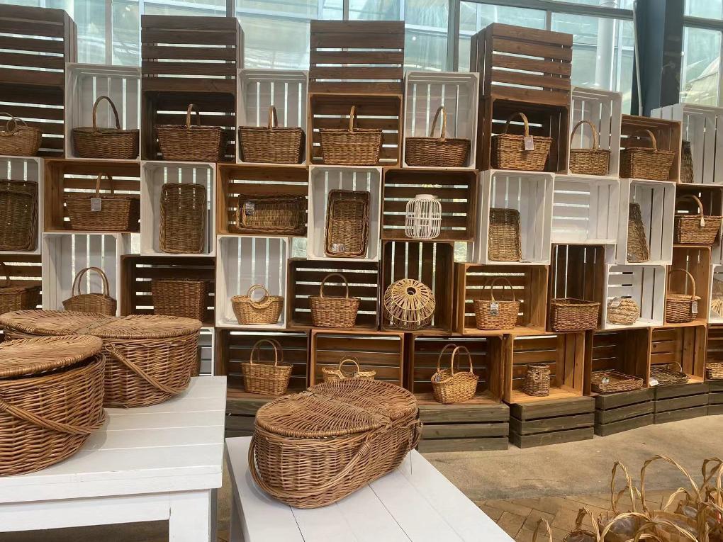 山東省臨沂市臨沭縣歐拉農(nóng)場(chǎng)展示的柳編家居收納物件。新華社記者劉錚 攝