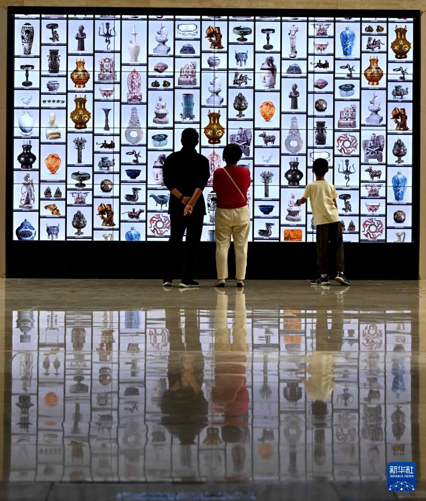 9月28日,觀眾在河北博物院體驗區(qū)互動體驗。