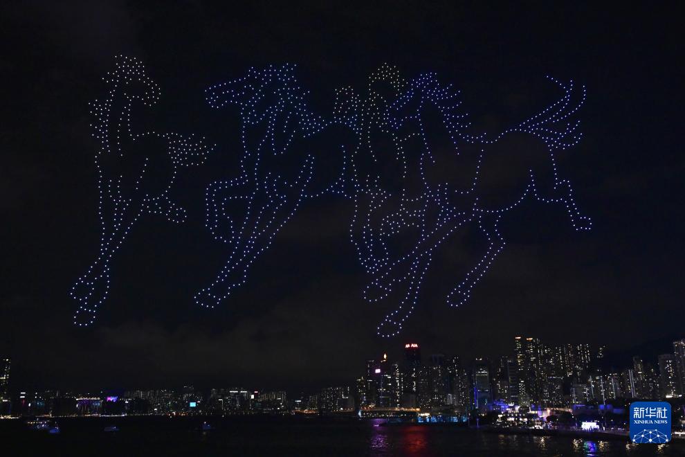 9月28日,香港舉辦“香港馬騰盛世”無人機(jī)表演,迎接國慶節(jié)的到來。