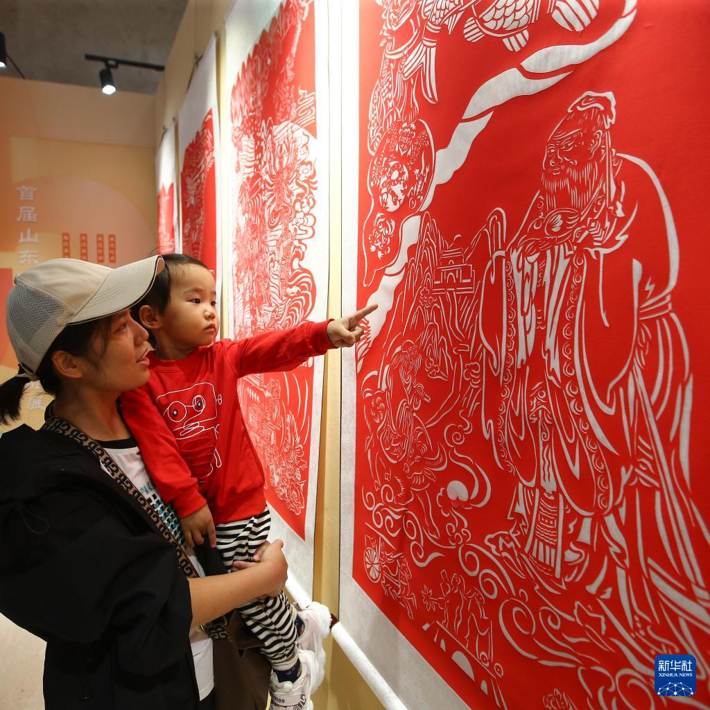 9月28日,市民在山東省濟(jì)南市文化館參觀迎國慶剪紙藝術(shù)精品展。