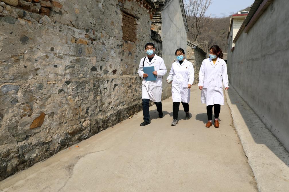 河北省保定市易縣良崗衛(wèi)生院醫(yī)護人員入戶巡診。(受訪對象供圖)