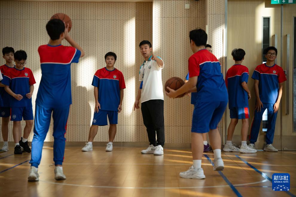 11月12日,澳門中華總商會附設(shè)青洲中學(xué)體育老師梁駿朗帶領(lǐng)學(xué)生進(jìn)行籃球訓(xùn)練。新華社發(fā)(張金加攝)