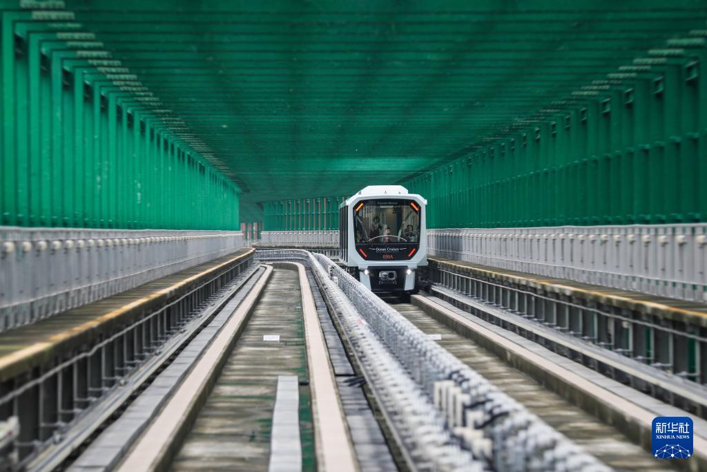 這是11月21日在澳門拍攝的行駛中的輕軌列車。新華社記者 王益亮 攝