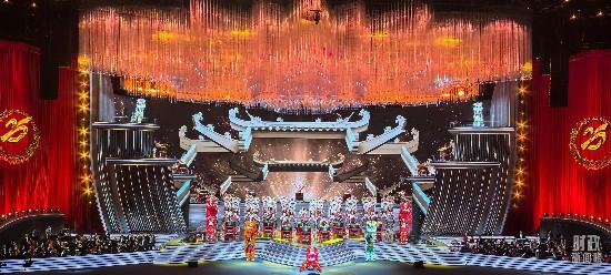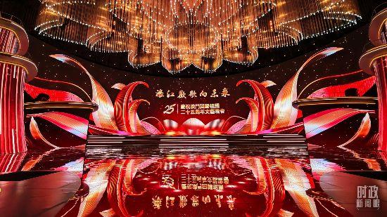 △慶祝澳門回歸祖國(guó)25周年文藝晚會(huì)現(xiàn)場(chǎng)燈光璀璨,歡樂(lè)喜慶。(總臺(tái)央視記者許永松拍攝)