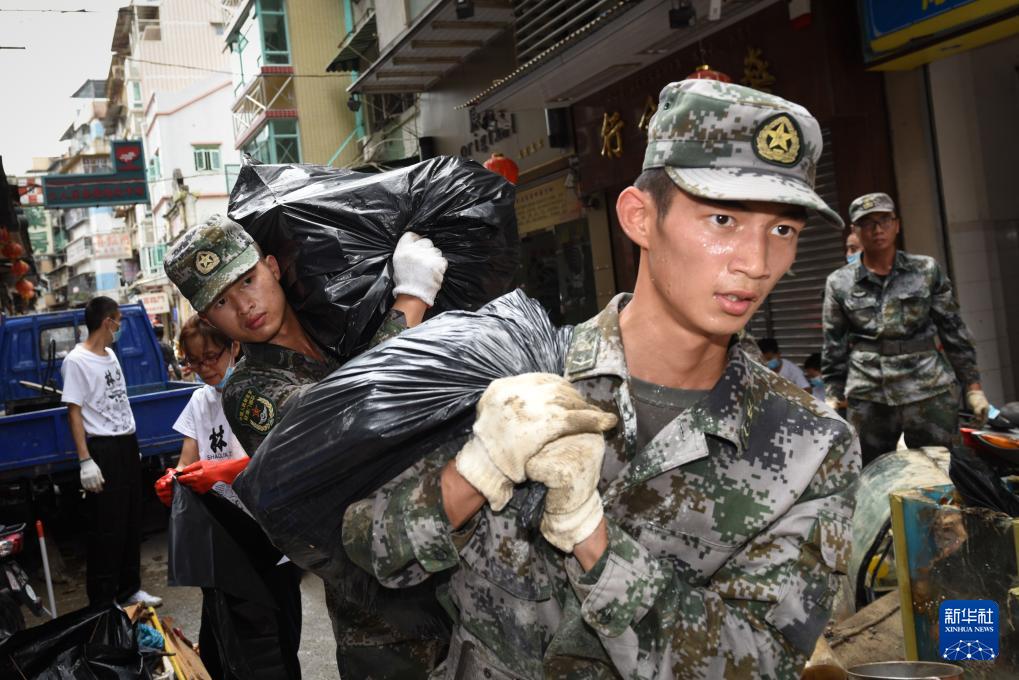 駐澳門部隊官兵參加“天鴿”臺風救援活動(2017年8月25日攝)。新華社發(fā)(葉華敏 攝)