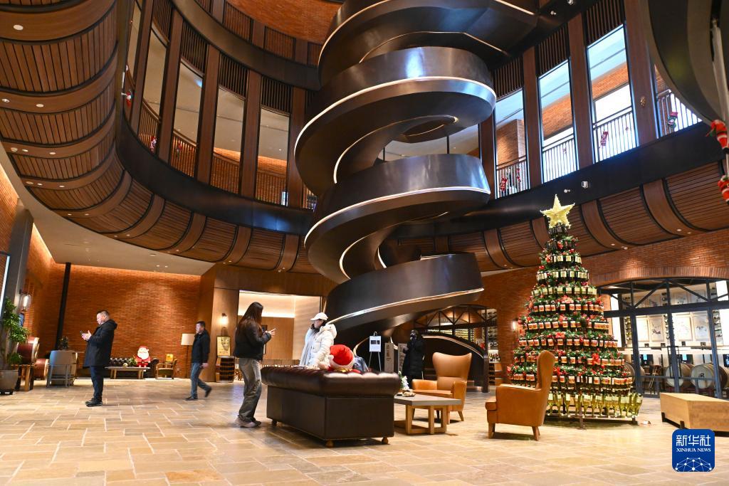 12月24日,游客在位于寧夏銀川市的圖蘭朵葡萄酒小鎮(zhèn)參觀葡萄酒廊。