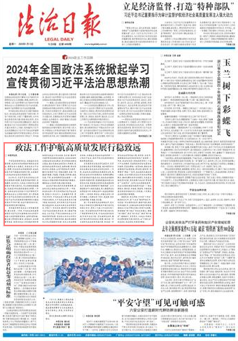 2024年1月,習近平總書記對政法工作作出重要指示強調(diào),堅持黨的絕對領(lǐng)導,忠誠履職、擔當作為,以政法工作現(xiàn)代化支撐和服務中國式現(xiàn)代化,為全面推進強國建設、民族復興偉業(yè)提供堅強安全保障。一年來,各級政法機關(guān)堅持以習近平新時代中國特色社會主義思想為指導,深入貫徹落實習近平法治思想和總體國家安全觀,把習近平總書記的重要指示精神轉(zhuǎn)化為建設更高水平平安中國、法治中國的實際行動,護航高質(zhì)量發(fā)展行穩(wěn)致遠。
