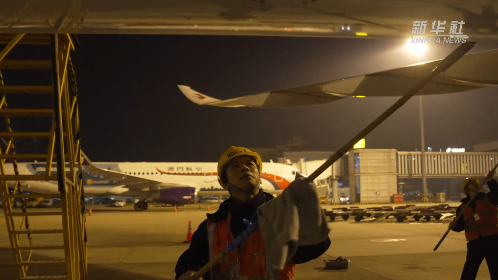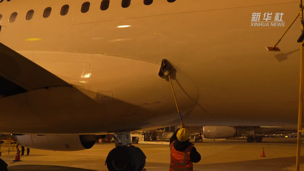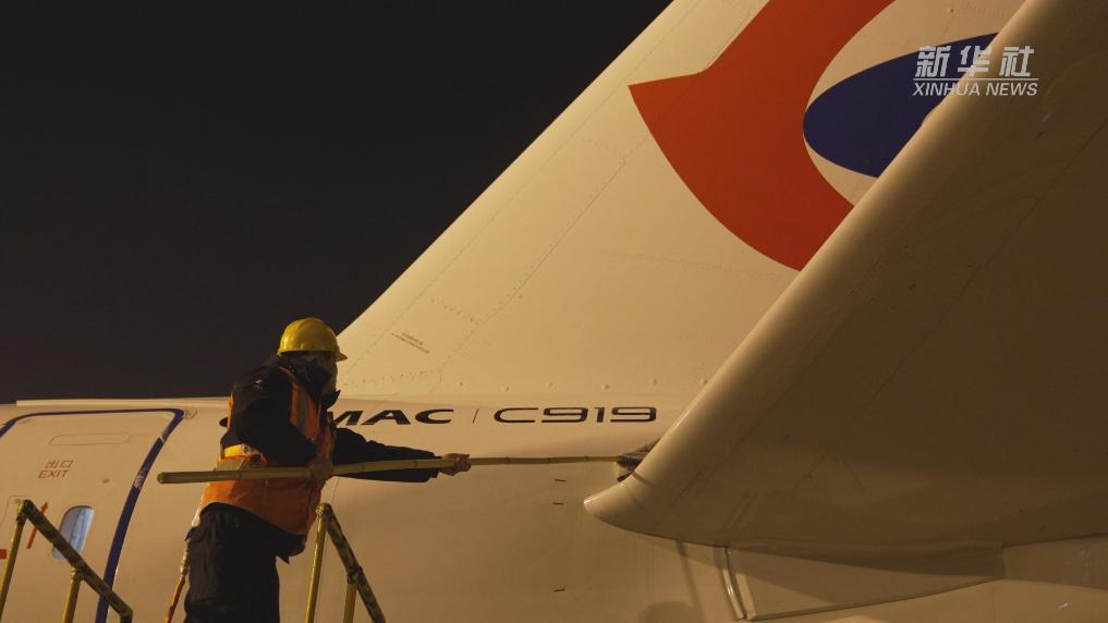 新春走基層丨給C919洗個(gè)澡:閃亮亮的C919來接駕