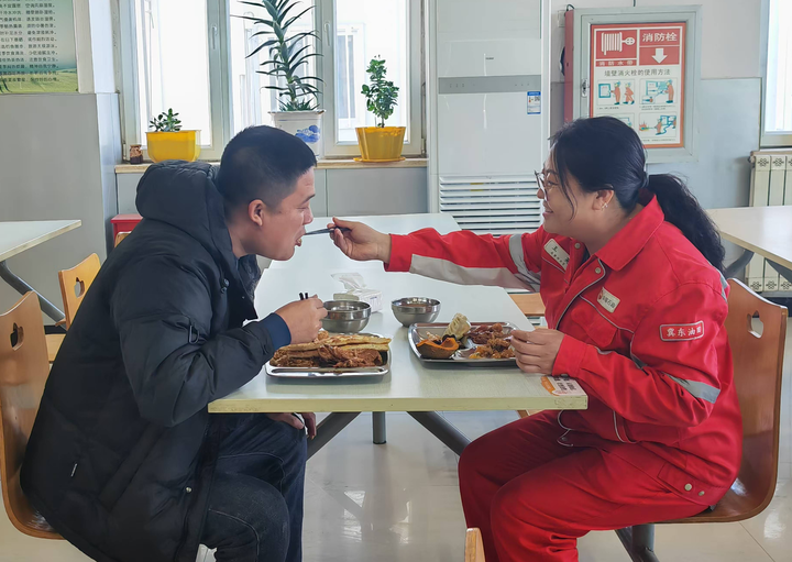 之前夫妻二人在南堡油田第五工區(qū)工作,但兩人工作地點(diǎn)之間也有約1個(gè)小時(shí)車程。徐春和所在的單井點(diǎn)平臺(tái),需要24小時(shí)值守,所以他和班組5名同事采取一周一倒休的模式?!懊刻斐燥埗紱]有固定時(shí)間,生產(chǎn)忙的時(shí)候經(jīng)常一個(gè)月回不了家?!彼f。