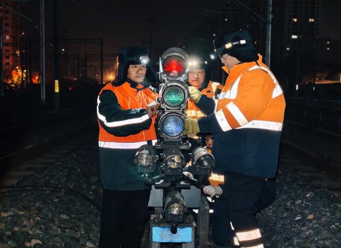 “‘天窗’命令已下達,作業(yè)時間00時30分-4時30分,可以上道?!?月15日凌晨0時30分,隨著駐站聯(lián)絡(luò)員下達作業(yè)命令,早已等候在網(wǎng)門外的中國鐵路沈陽局集團有限公司沈陽電務(wù)段信號中修車間主任高巖復述了一遍工作內(nèi)容,與沈陽高速場工區(qū)職工開始作業(yè)。他們,也被稱為鐵路信號“保健醫(yī)”。