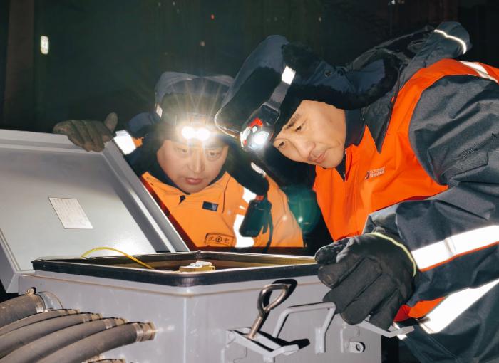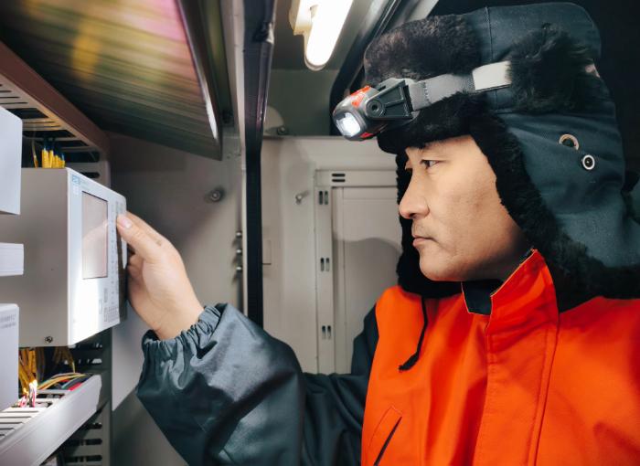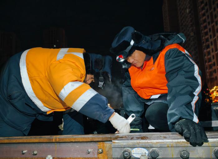 “天黑,大家注意腳下,防止滑倒,注意人身安全?!备邘r囑咐著工友,自己則一邊向前走,一邊觀察每一處設(shè)備外觀狀態(tài),走到138號道岔時,他蹲下身子,從工具包里掏出扳手,開始仔細地檢查每一處螺栓,發(fā)現(xiàn)一處關(guān)鍵螺栓有松動跡象,他立即緊固好,呼出的熱氣在睫毛上凝結(jié)成冰碴,模糊了視線,他就趁著起身的間隙,用袖子匆匆擦一把。