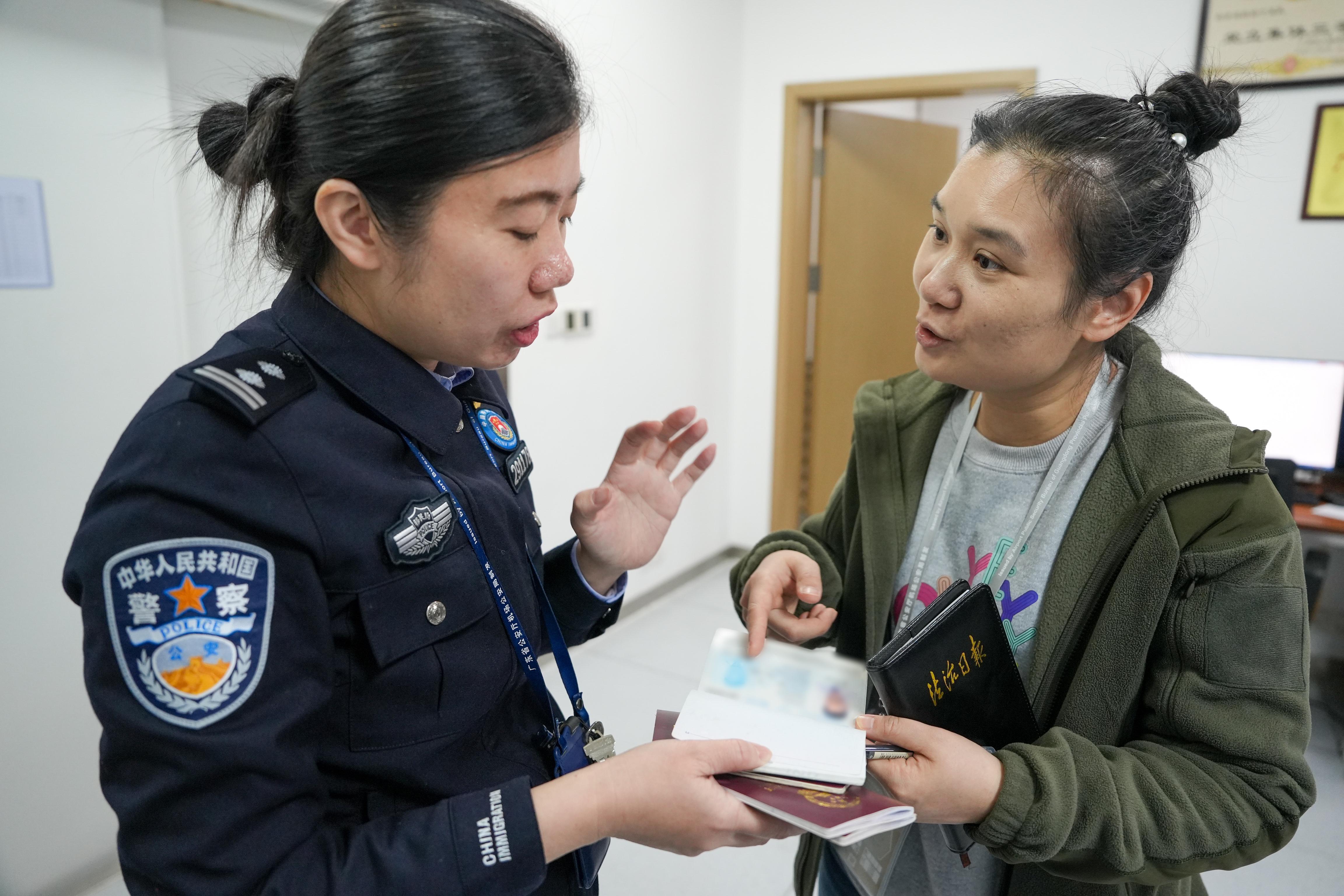 “新年好,不著急,慢慢來?!泵窬钤砌温曇魷睾?,接過護(hù)照后,她熟練地進(jìn)行人證對照、翻查護(hù)照、錄入信息、仔細(xì)核對……一氣呵成的流程結(jié)束,一枚驗(yàn)訖章穩(wěn)穩(wěn)地蓋下。