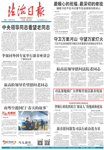 本報北京1月26日訊 記者趙婕 1月26日,司法部召開律師代表座談會,聽取對律師工作的意見建議,向全國廣大律師致以新春祝福,勉勵大家深入踐行習(xí)近平法治思想,做黨和人民滿意的好律師。黨組書記、部長賀榮,黨組成員、副部長王振江出席會議。