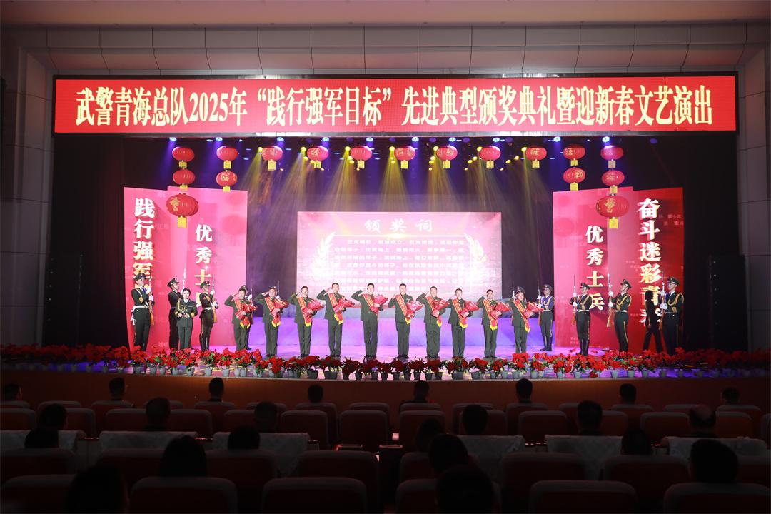 節(jié)目間隙還穿插了武警青??傟?duì)2025年“踐行強(qiáng)軍目標(biāo)”先進(jìn)典型頒獎(jiǎng)環(huán)節(jié),總隊(duì)首長(zhǎng)分別為8名警官、10名士兵和2名文職人員頒發(fā)“踐行強(qiáng)軍目標(biāo)”優(yōu)秀個(gè)人榮譽(yù)。一年來,在總隊(duì)黨委的堅(jiān)強(qiáng)領(lǐng)導(dǎo)下,官兵們堅(jiān)定信心、團(tuán)結(jié)奮進(jìn)、凝心聚力、勇?lián)姑?,涌現(xiàn)出很多先進(jìn)典型和模范。