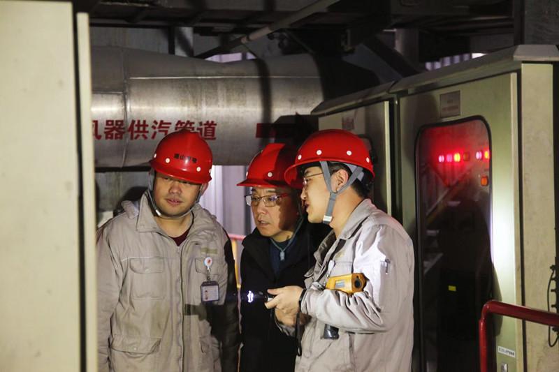 圖為記者(中)跟隨塔山發(fā)電公司員工進(jìn)行巡檢。 本報(bào)通訊員 樊晶璟 攝