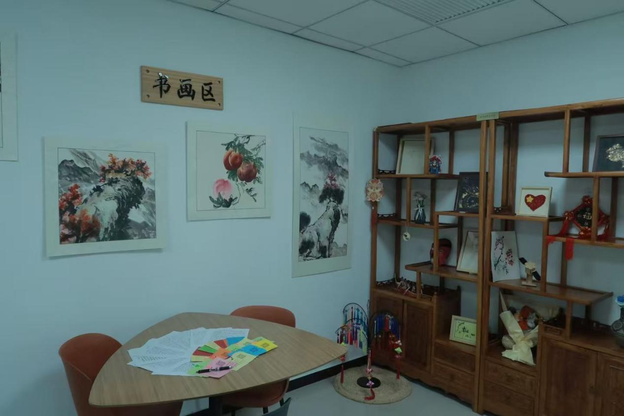 穿過矯正中心的走廊,有一間技能培訓(xùn)室,里面擺滿了社區(qū)矯正對象學(xué)習(xí)制作的各類手工、繪畫、攝影作品,這里是為矯正人員提供知識技能培訓(xùn)的場所。