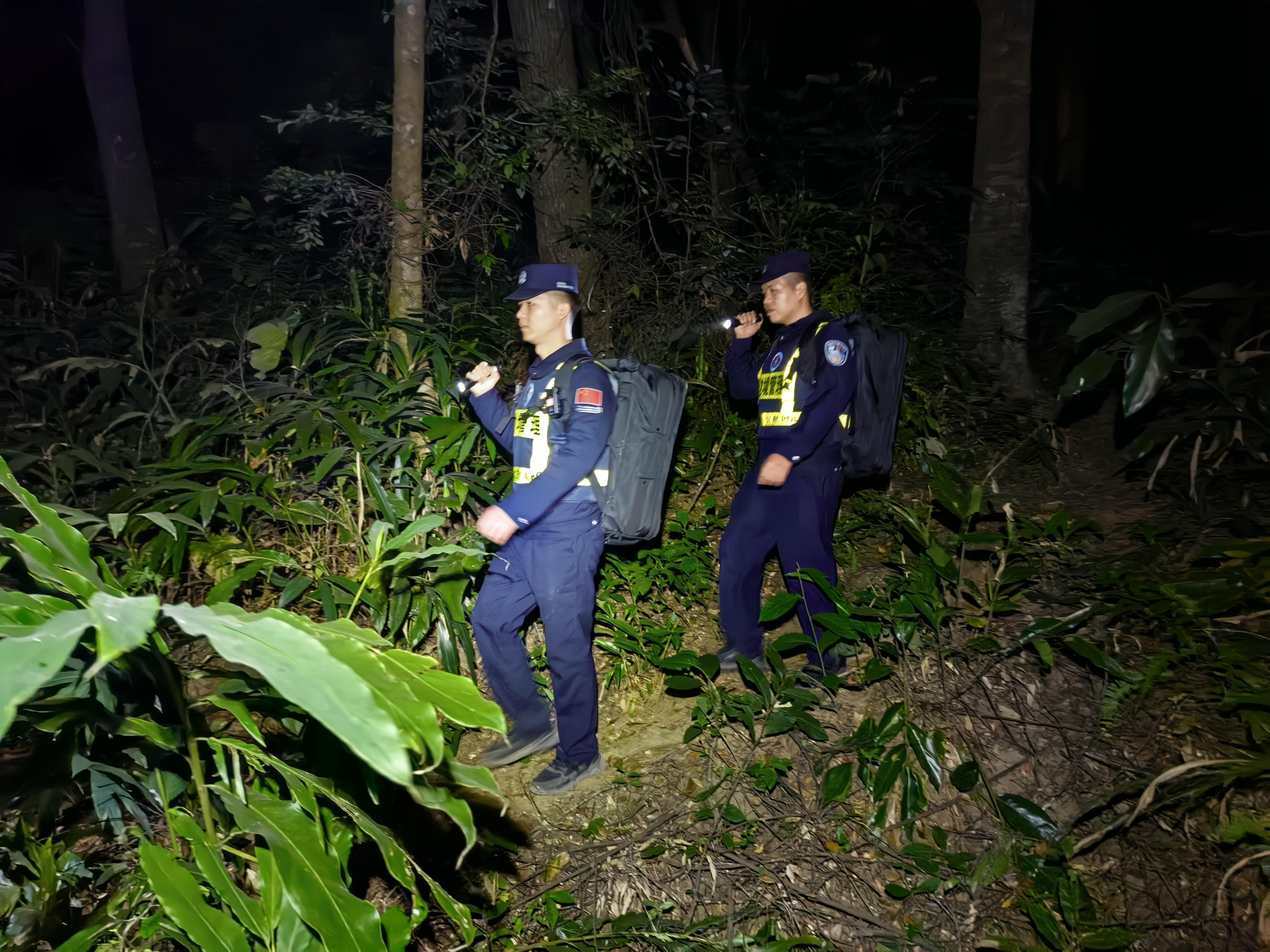 去年12月11日深夜,大青山警務(wù)室獲悉一條重要工作信息,一伙偷渡分子企圖從大青山附近偷渡出境。傅彬和同事莫璧成立即在重要路段設(shè)卡攔截,雖然發(fā)現(xiàn)目標(biāo)車輛但車內(nèi)并無其他人員。民警根據(jù)工作經(jīng)驗判斷,該車可能已讓可疑人員下車離開。隨即,莫璧成立即聯(lián)系護(hù)邊員、網(wǎng)格員等群眾力量對附近區(qū)域進(jìn)行搜索。