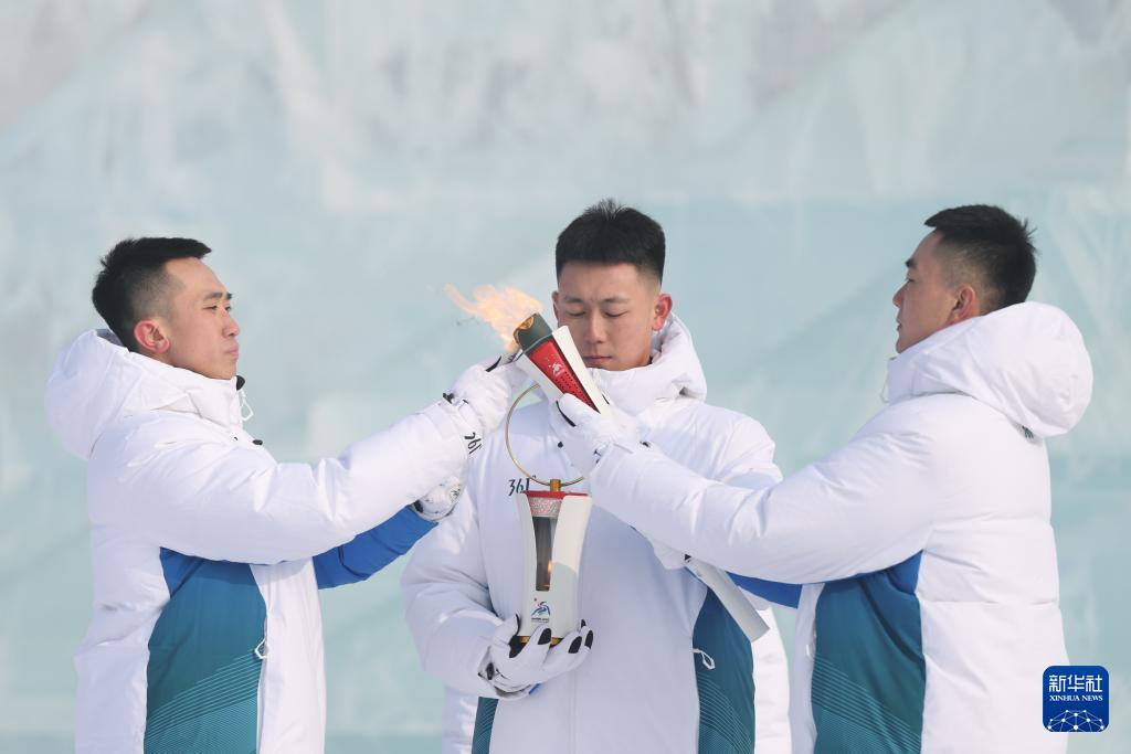 1月20日,采火使者正在傳遞火種。新華社記者 張濤 攝