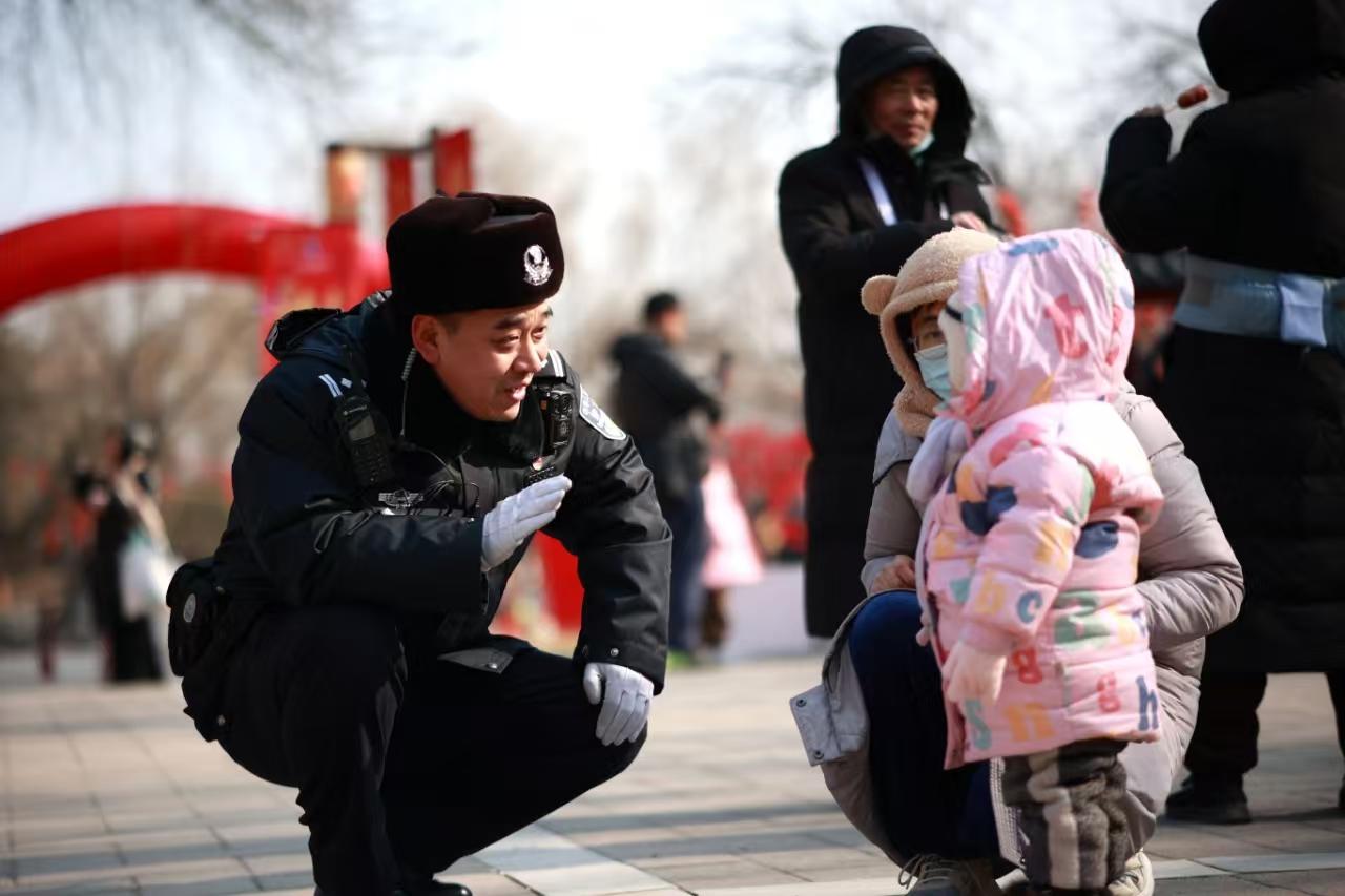 今年圓明園廟會將傳統(tǒng)年味、非遺文化、數(shù)字科技、冰雪運動集于一體,前來打卡的游客絡繹不絕,海淀民警時刻緊繃安全這根弦,為游客提供身邊的暖心服務。
