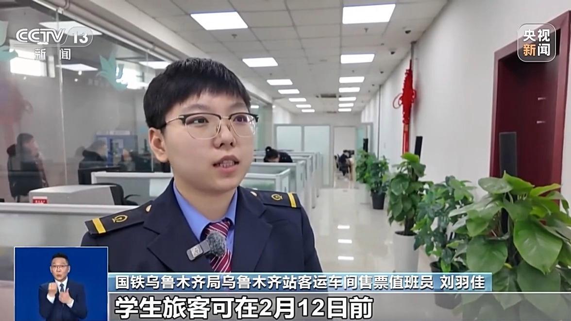 國鐵烏魯木齊局烏魯木齊站客運(yùn)車間售票值班員 劉羽佳:學(xué)生旅客可在2月12日前,預(yù)約購買2月28日(前)的火車票,家庭居住地與學(xué)校所在地不在同一城市,已通過學(xué)生優(yōu)惠資質(zhì)核驗,且有剩余優(yōu)惠次數(shù)的學(xué)生,都可以在學(xué)生購票專區(qū)購票。