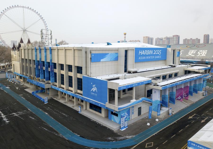 這是1月21日拍攝的哈爾濱2025年第九屆亞冬會(huì)主新聞中心(無人機(jī)照片)。新華社記者 王松 攝