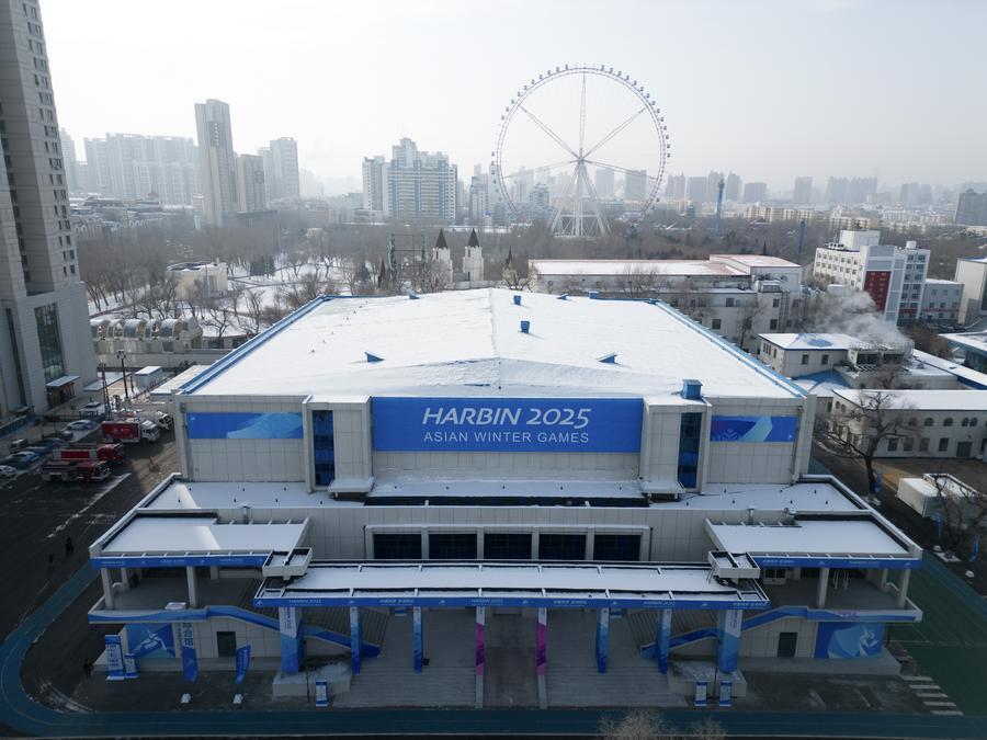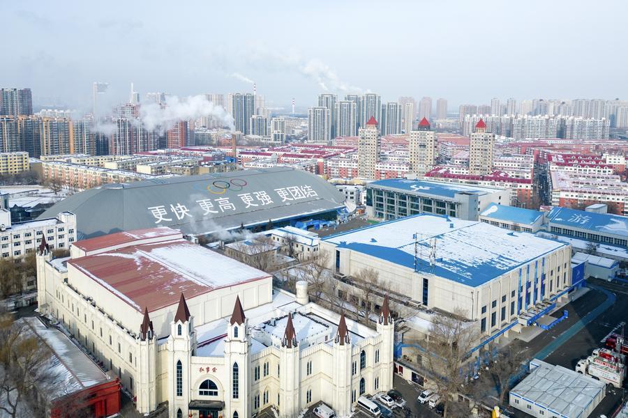 這是1月21日拍攝的黑龍江省冰上訓(xùn)練中心綜合館(短道速滑、花樣滑冰比賽場(chǎng)館)(無人機(jī)照片)。新華社記者 王松 攝