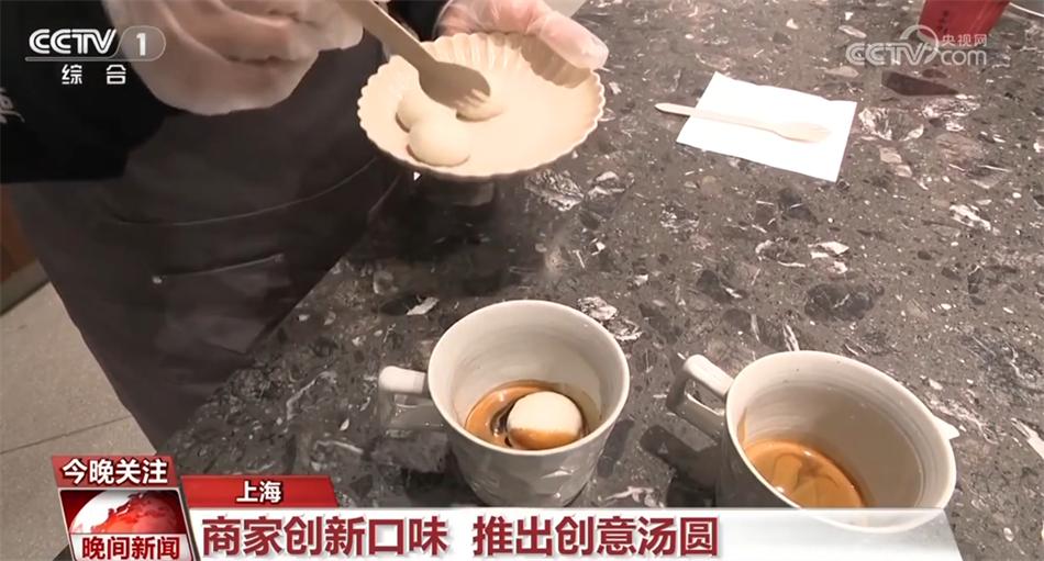今年,不少商家還追求“新奇”與“融合”。在上?;春V新返倪@家咖啡店,推出的一款“美式湯圓”這幾天受到不少顧客的關(guān)注。所謂“美式湯圓”,就是湯圓泡在了咖啡里,顧客點單后,后廚工作人員開始現(xiàn)煮芝麻湯圓,前臺咖啡師則同步萃取濃縮咖啡。待湯圓煮好以后,以濃縮咖啡液作底,放入軟糯的白湯圓,再撒上“靈魂輔料”桂花碎,一杯充滿混搭氣息的“美式湯圓”就做好了。