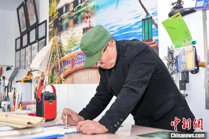 中新網(wǎng)嘉興2月2日電(黃彥君 蔣彧淼)畫畫、扎傘骨、藍印花布裱托、刺孔……農(nóng)歷蛇年春節(jié)期間,在浙江省嘉興市秀洲區(qū)新塍鎮(zhèn),年過七旬的陳淵明整日把自己“關”在工作室內,緊鑼密鼓制作花燈,為元宵節(jié)期間“鰲山燈會”做準備。