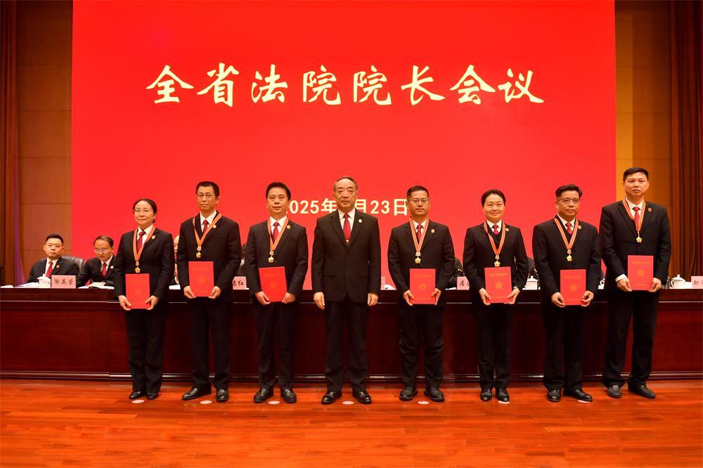 會上,傅信平為7位基層法院院長頒發(fā)了榮譽(yù)天平紀(jì)念章和證書。江西高院黨組副書記、副院長居國屏主持會議,黨組成員、政治部主任盛茵通報2024年全省法院獲得省部級以上表彰獎勵和通報表揚(yáng)的集體和個人情況。3家中院和5家基層法院現(xiàn)場作交流發(fā)言,9家中院和6家基層法院作書面交流。