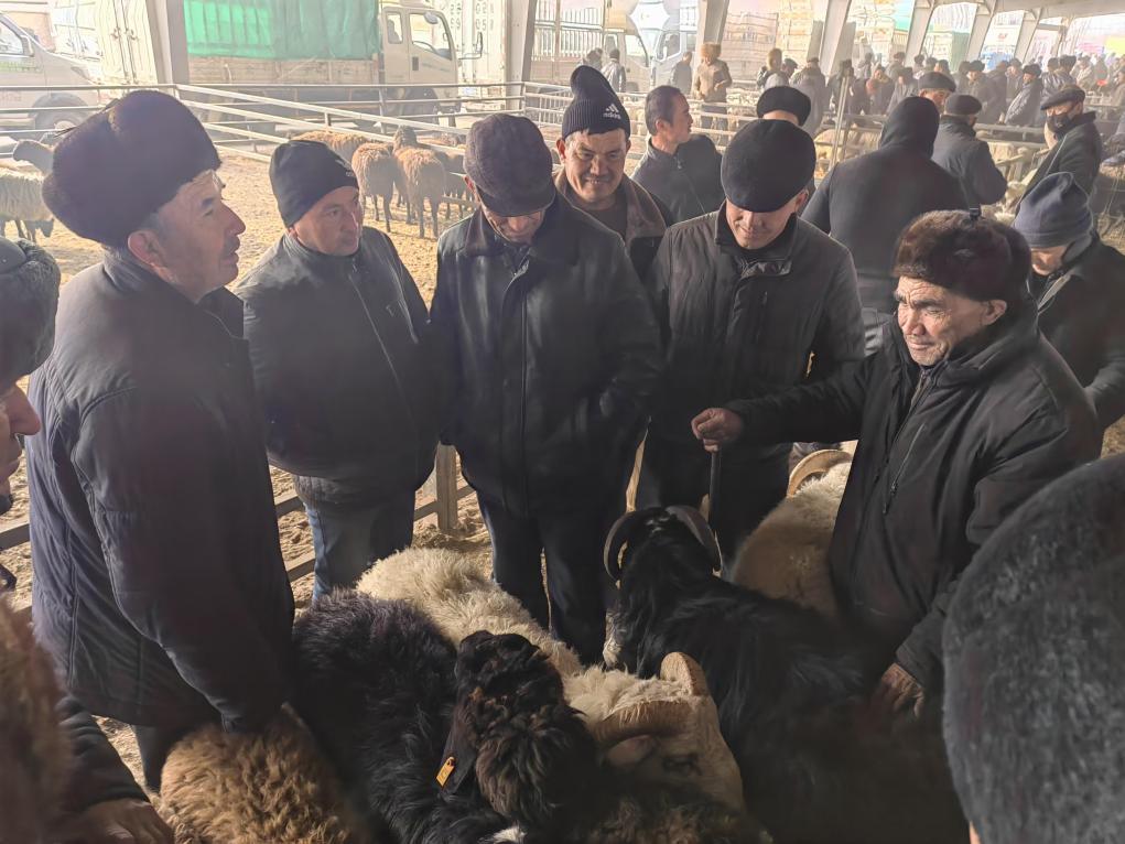 1月5日,在新疆喀什市牛羊大巴扎,買賣雙方正在討價(jià)還價(jià)。新華社記者蔡國(guó)棟 攝