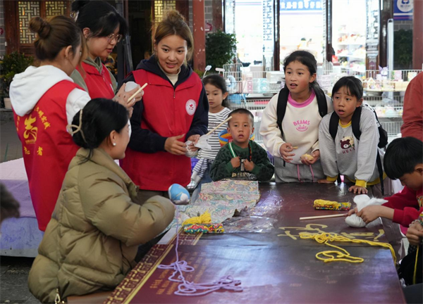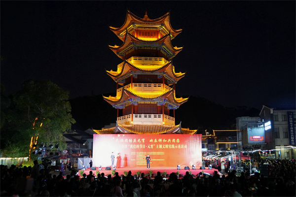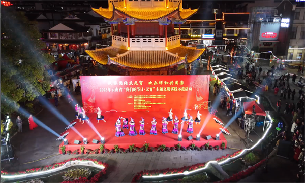 在普洱古鎮(zhèn),豐富多樣的文明實踐活動同步開展,書法愛好者以筆為媒,飽蘸深情,精心書寫并送上承載著“祝?!薄捌桨病薄敖】怠钡哪珜?。當社會主義核心價值觀、傳統(tǒng)文化以及移風易俗理念巧妙融入謎面時,群眾穿梭于燈謎中,答得不亦樂乎。此外,燈籠制作、糖畫制作、烤茶、拓印、染紅蛋、舂粑粑等體驗環(huán)節(jié)吸引了不少群眾駐足。現(xiàn)場,各族群眾身著盛裝,手拉手圍著篝火跳舞,歡聲笑語賀佳節(jié),描繪出中華民族一家親的美好畫面,營造歡樂祥和的節(jié)日氛圍。