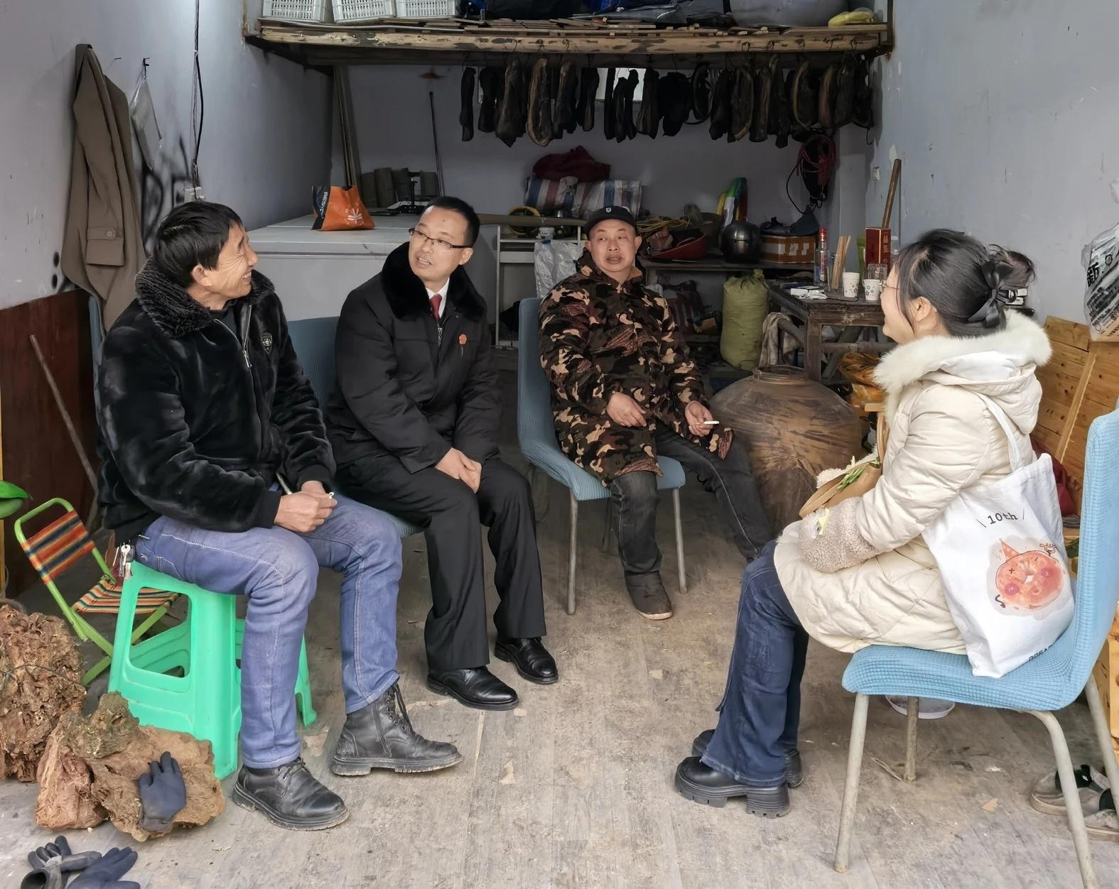 1月23日,屏山法院在開展欠薪專項(xiàng)執(zhí)行行動(dòng)中,辦案法官(左二)前往申請(qǐng)執(zhí)行人家中了解情況。