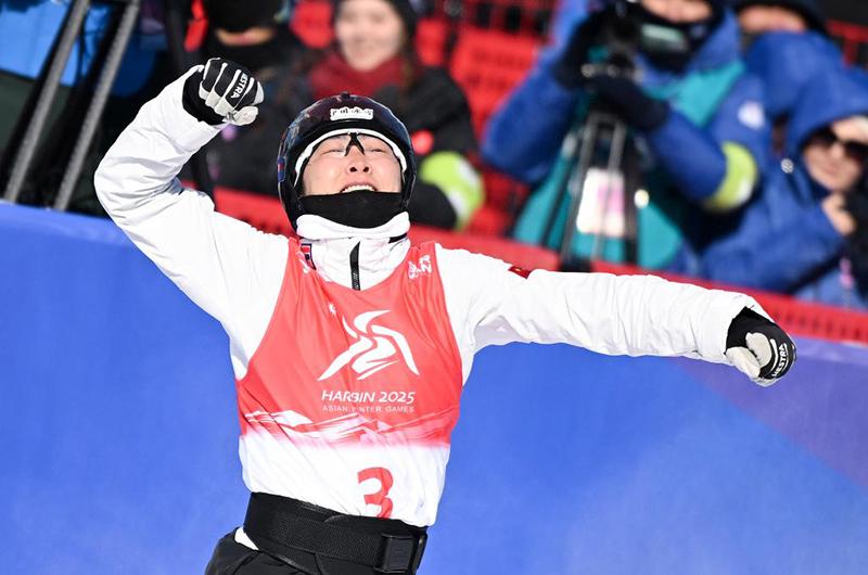 2月9日,徐夢桃慶祝奪冠。新華社記者 夏一方 攝