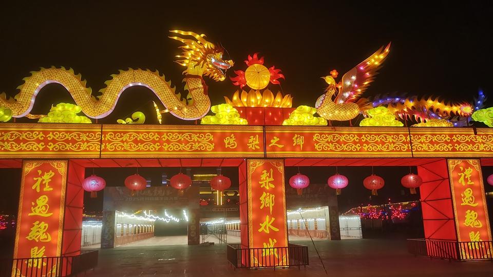 魏縣魏祠廣場(chǎng)布置的迎新春“禮遇魏縣”龍鳳呈祥華燈流光溢彩,喜迎蛇年春節(jié)。魏縣縣委宣傳部供圖(王德峰 攝)