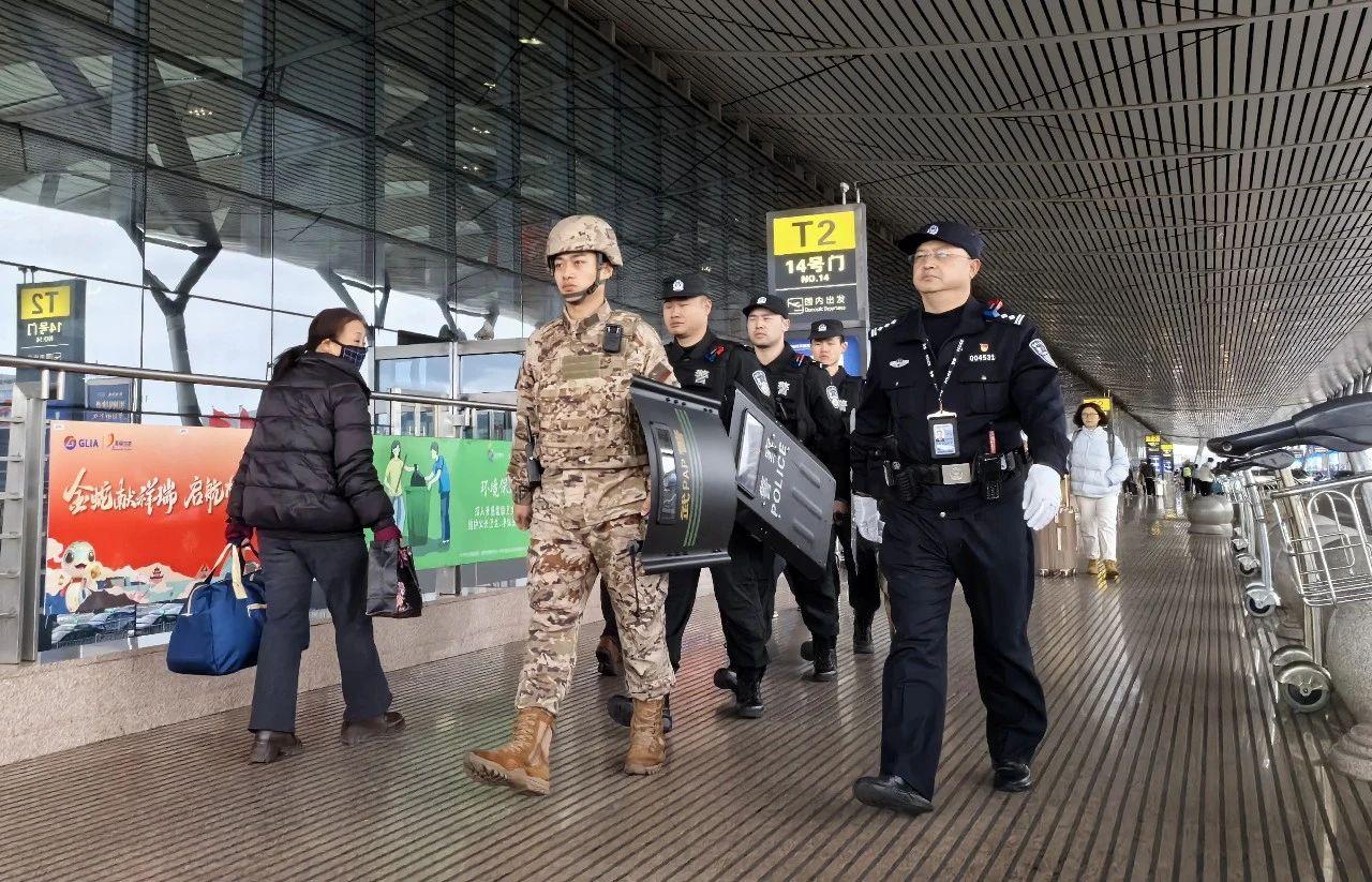 圖為廳機(jī)場公安局民警聯(lián)合武警開展巡邏。