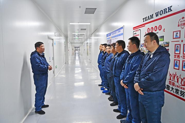 8:00,記者和王東林一起換上防塵服和鞋套,戴上口罩后,通過(guò)除塵通道進(jìn)入車間內(nèi)部。