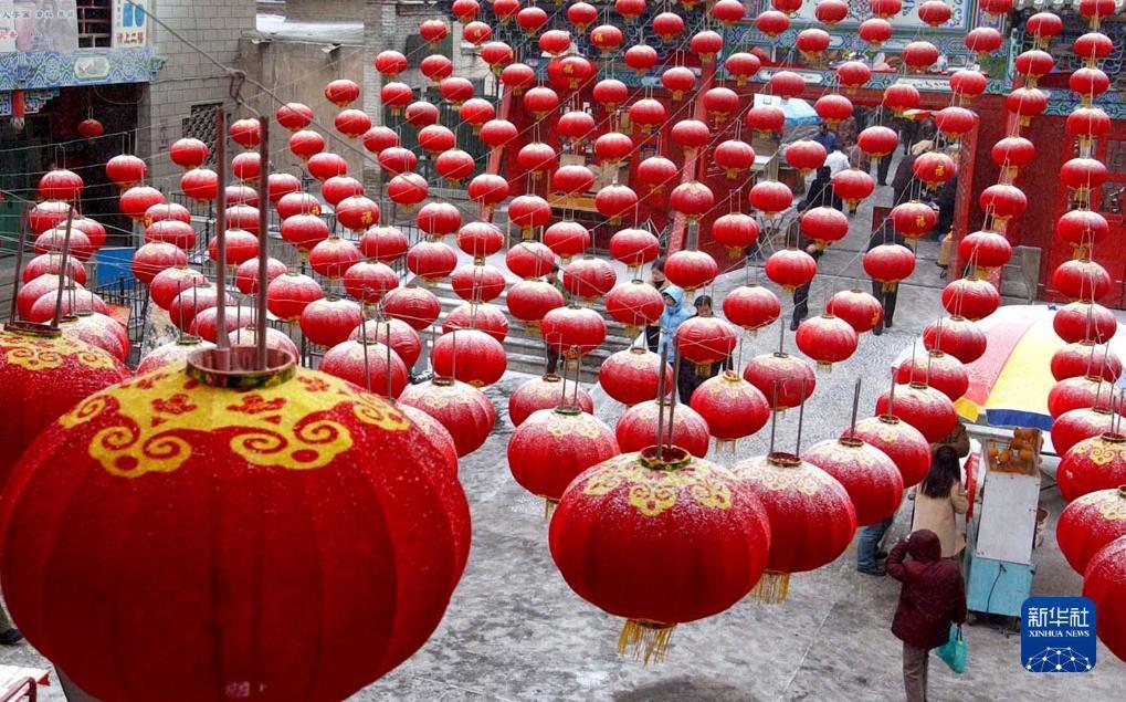 2004年2月1日,蘭州市隍廟內(nèi)白雪掩映下的紅燈籠更顯喜氣。新華社記者 韓傳號 攝
