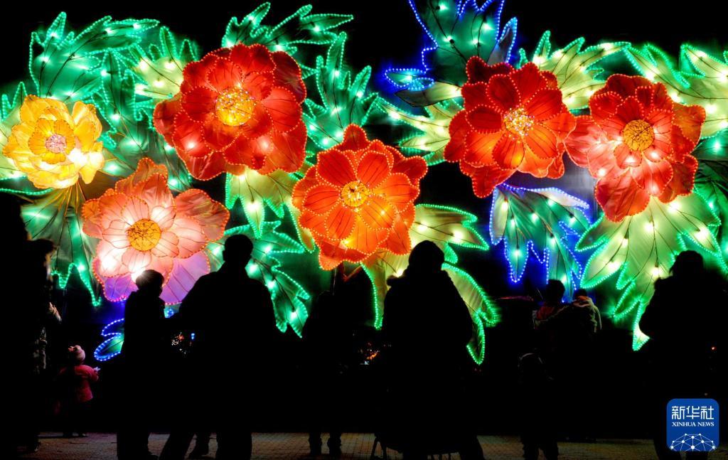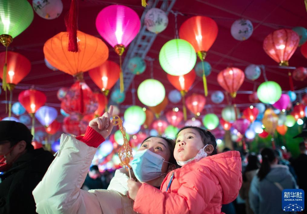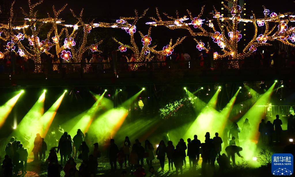 2016年2月22日,游客在武漢園博園觀賞彩燈。新華社記者 程敏 攝