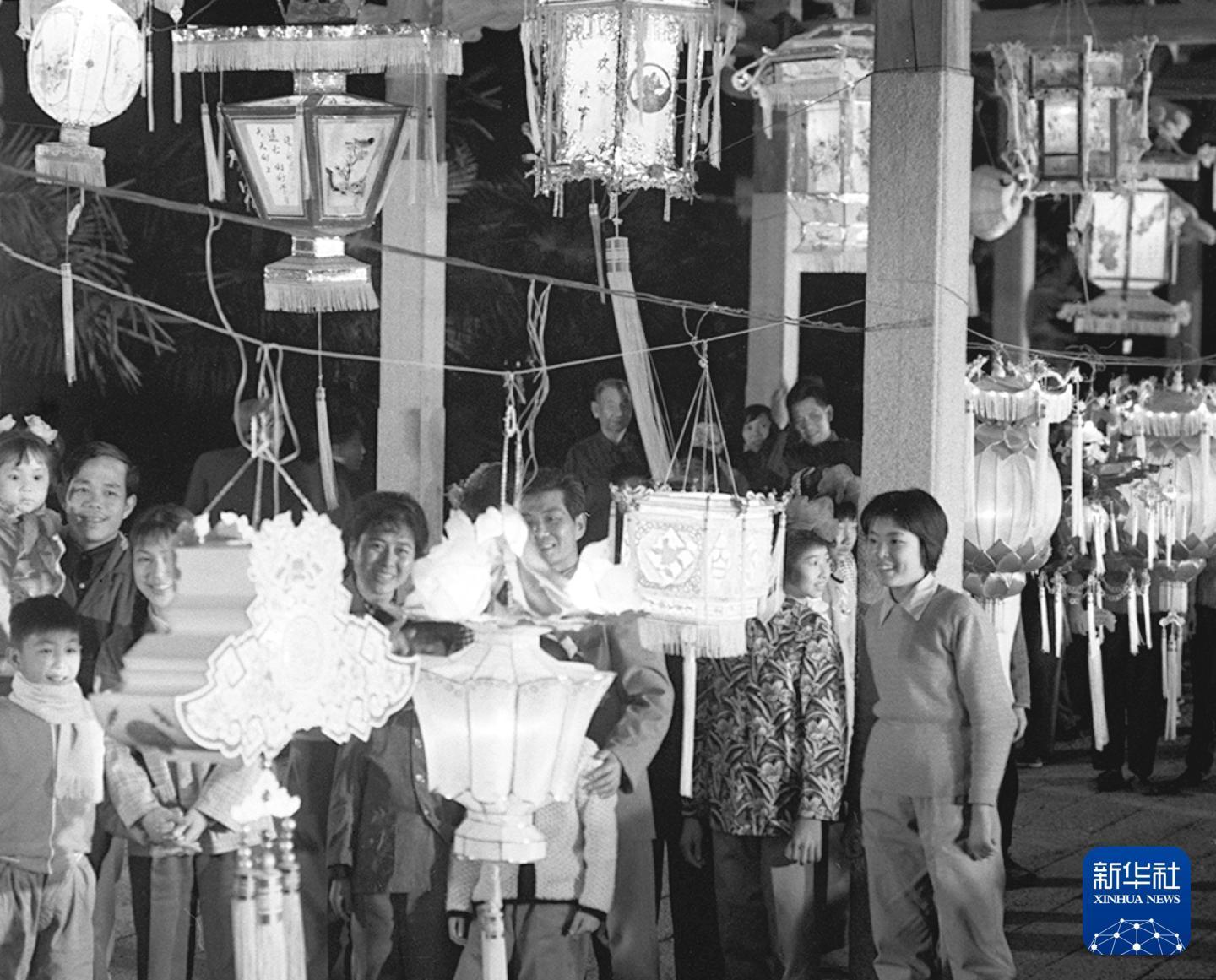 1979年元宵節(jié),人們在福建泉州觀賞各式花燈。新華社發(fā)(黃必賢 攝)