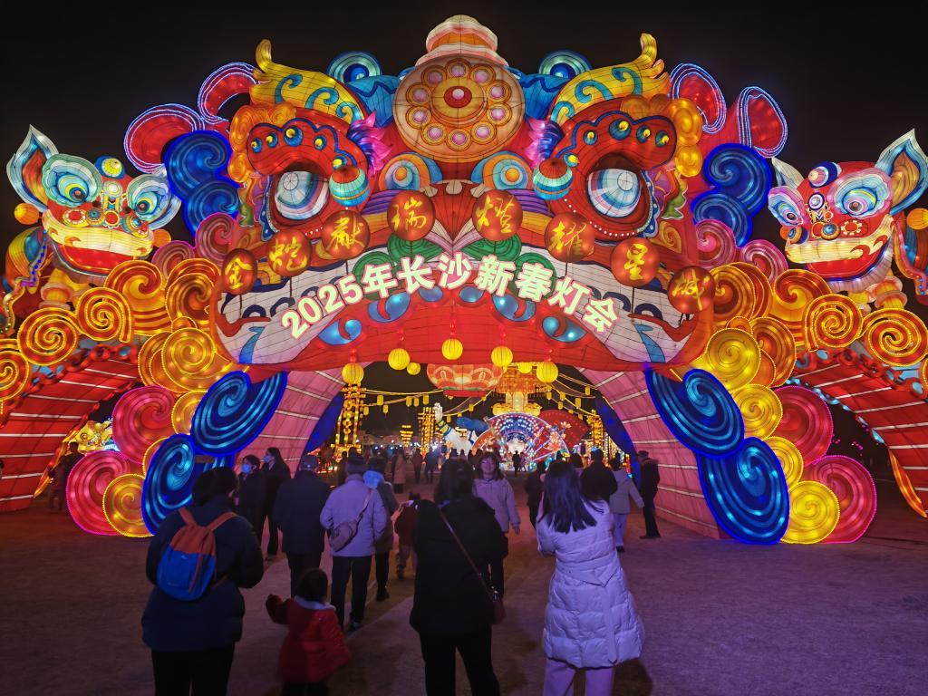 同時,科技助力讓“賞花燈”更加炫酷。位于湖南湘江新區(qū)的華誼兄弟(長沙)電影小鎮(zhèn),40多組大型主題燈組形成的“花燈大世界”里,不僅展示了長沙銅官窯、錦鯉、芙蓉花等國風元素,還打造了一條沉浸式光影通道。