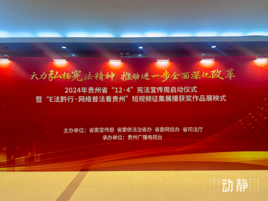 2024年12月1日,由省委宣傳部、省委依法治省辦、省委網(wǎng)信辦、省司法廳聯(lián)合主辦的2024年貴州省“12·4”憲法宣傳周啟動儀式暨“E法黔行·網(wǎng)絡普法看貴州”短視頻征集展播獲獎作品展映式在貴陽舉行。