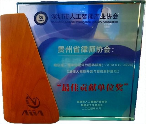 貴州省律師協(xié)會大數(shù)據(jù)和信息化專業(yè)委員會主任李緒誠律師作為主要起草人,參與國內(nèi)首個法律大模型團體標準T/AIIA 010-2024《法律大模型開發(fā)與應(yīng)用服務(wù)規(guī)范》編制。該標準于2024年8月發(fā)布,推動法律人工智能服務(wù)規(guī)范化、高效化。貴州省律師協(xié)會獲評“最佳貢獻單位獎”,彰顯其在法律科技領(lǐng)域的引領(lǐng)力。