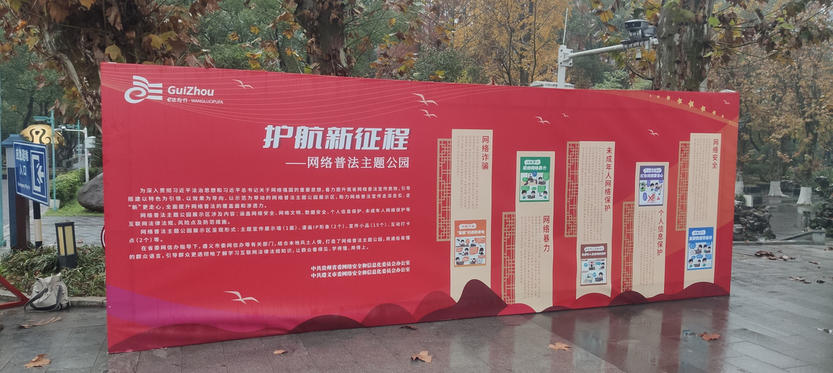 遵義市委網(wǎng)信辦依托遵義紀(jì)念公園打造網(wǎng)絡(luò)普法主題公園,展示涵蓋網(wǎng)絡(luò)安全、網(wǎng)絡(luò)文明、網(wǎng)絡(luò)詐騙、網(wǎng)絡(luò)沉迷、數(shù)據(jù)安全、個(gè)人信息保護(hù)、未成年人網(wǎng)絡(luò)保護(hù)等互聯(lián)網(wǎng)法律法規(guī),以主題宣傳展示墻、漫畫(huà)IP形象、宣傳小品及互動(dòng)打卡點(diǎn)等形式進(jìn)行普法宣傳。