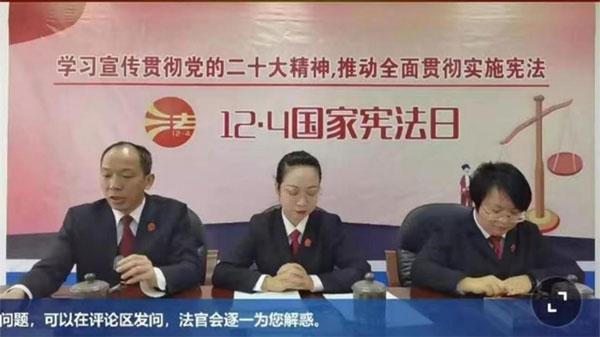 直播互動,深入服務(wù)群眾。為充分發(fā)揮新媒體傳播快、關(guān)注度高、互動性好的特點,黔南中院在新媒體平臺進行庭審直播,讓群眾在觀看直播中學(xué)習(xí)法律知識,截至目前,通過直播庭審方式普法已達4億人次;連續(xù)兩年,在國家憲法日宣傳中,邀請法官走進直播間釋法、解答群眾法律咨詢,近20萬人次在線觀看。