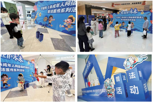契合未成年人心理需求,重點(diǎn)強(qiáng)化參與性和互動(dòng)性。線下活動(dòng)中,現(xiàn)場布置主題打卡框,搭建趣味主題小游戲區(qū)域,設(shè)置簽名墻邀請未成年人及家長簽名留念,制作未成年人網(wǎng)絡(luò)保護(hù)標(biāo)語海報(bào),營造熱烈喜慶的良好氛圍。搭建起互動(dòng)舞臺,通過射箭互動(dòng)—擊碎網(wǎng)絡(luò)不良信息、投壺互動(dòng)—提高自身網(wǎng)絡(luò)素養(yǎng)、套圈互動(dòng)—向網(wǎng)絡(luò)沉迷說不等多種生動(dòng)有趣的互動(dòng)游戲,激發(fā)未成年人參與熱情,寓教于樂讓未成年人學(xué)習(xí)掌握《條例》要點(diǎn)。在線上平臺,制作上線了普法宣傳主題視頻、普法四格漫畫、普法知識問答、對“不良信息”說NO——網(wǎng)絡(luò)普法小游戲等多種形式的普法宣傳,將《條例》的相關(guān)條款進(jìn)行了詳細(xì)的解讀和宣傳,重點(diǎn)突出了未成年人網(wǎng)絡(luò)素養(yǎng)提升、網(wǎng)絡(luò)信息內(nèi)容規(guī)范、個(gè)人信息網(wǎng)絡(luò)保護(hù)、網(wǎng)絡(luò)沉迷防治等關(guān)鍵內(nèi)容。
